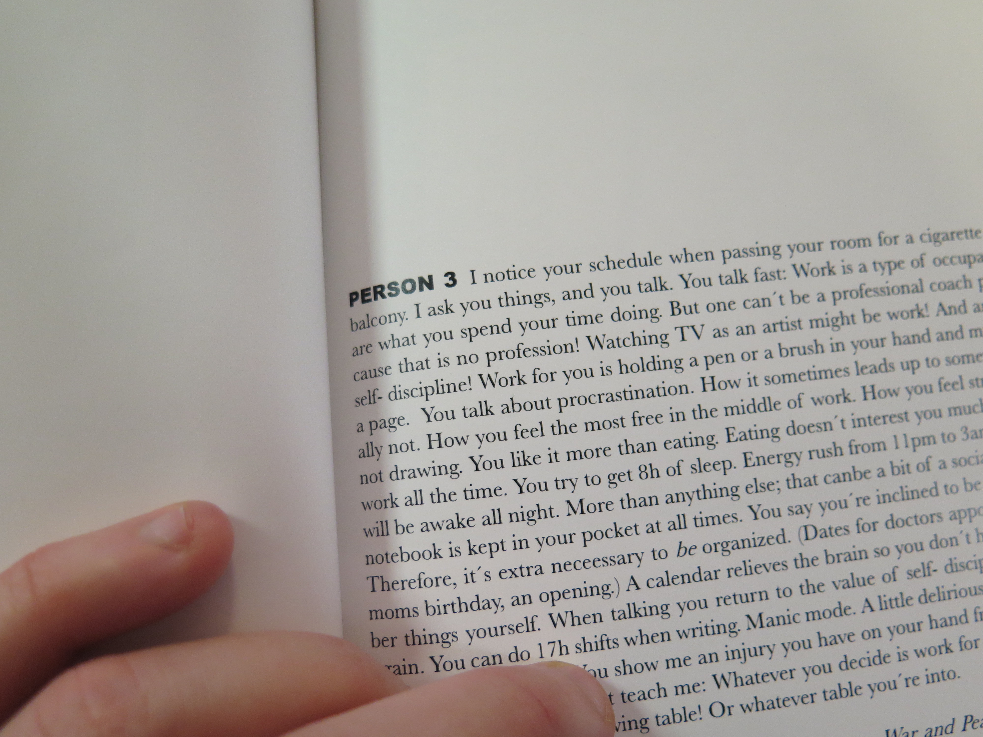 Texts based on conversations with 8 fellow artists, and a series of 8 photos.