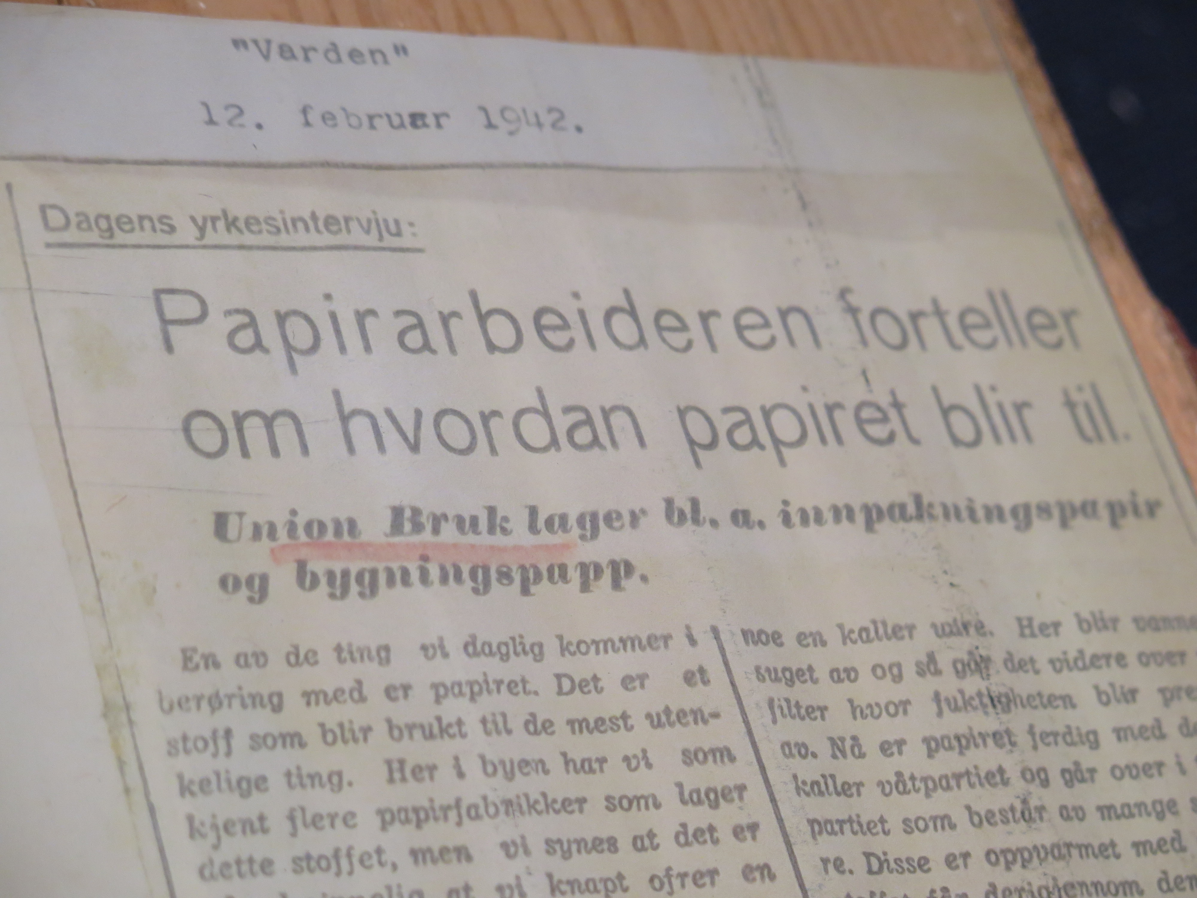 Pine from local saw mill, Norske Skog Union archive material (images, press), photo from reading room at the National Archive, custom made protocols. Size varies.