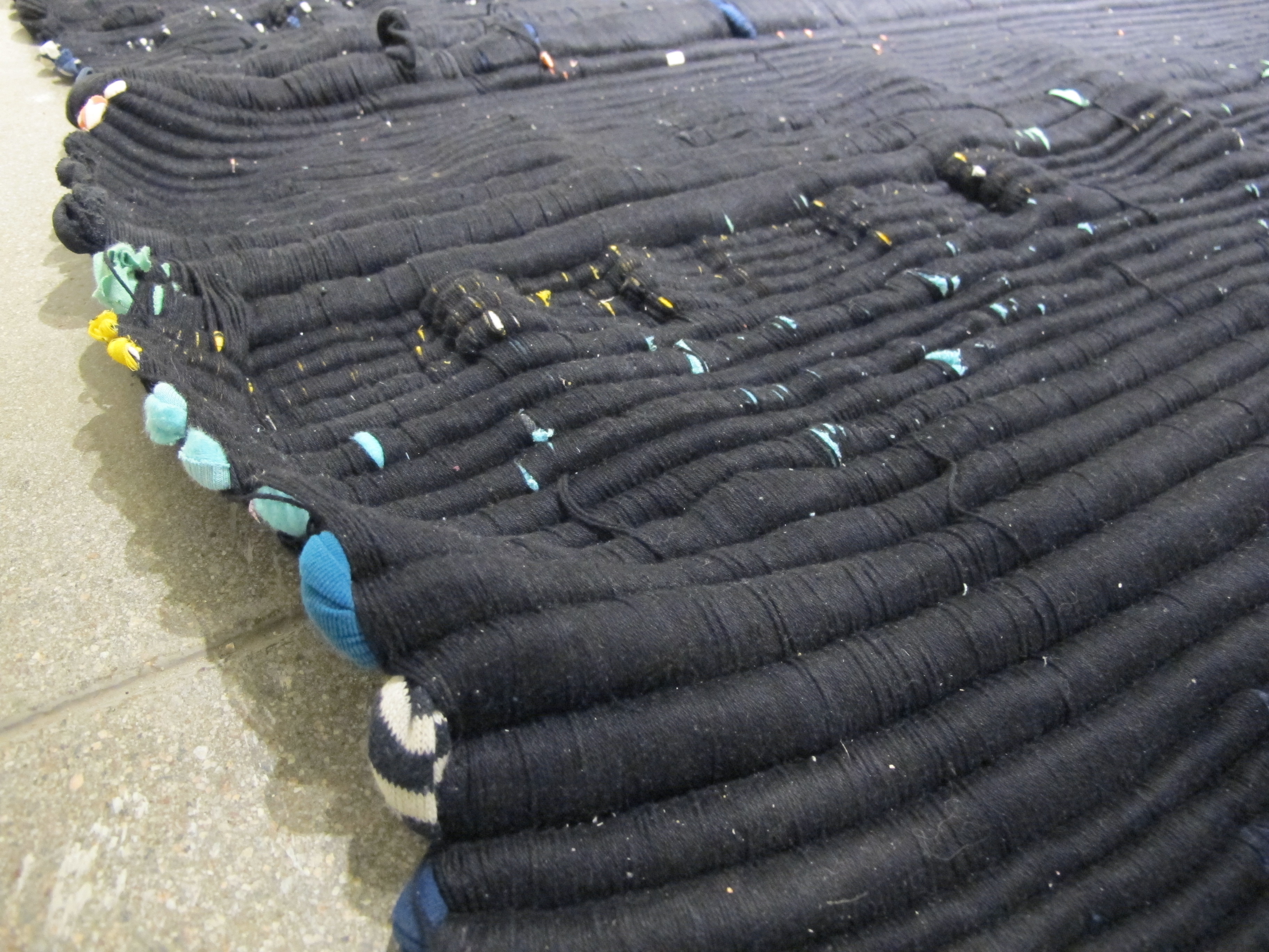 Installation consisting of the object Studio Door and Clothes I Cannot Keep (woven with my own clothes, cotton, 180 x 350cm).
